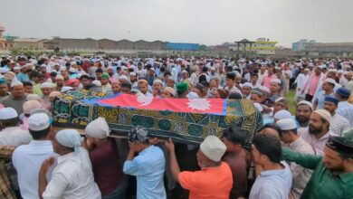 प्रदर्शनका क्रममा गोली लागेर शहादत प्राप्त गरेका अहसाब आलमको अन्त्येष्टि