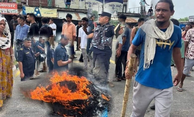 बाँके । जानकी गाउँपालिकाको वडा नम्बर ४ नहर चोकमा स्थानीयले टायर बालेर सडक अवरुद्ध गरेका छन । नेपालगञ्ज–खजुरा सडकखण्ड अन्तर्गत खजुरा खुर्दमा शनिबार राती मोटरसाइकलको ठक्करबाट ६ वर्षीय बालकको ज्यान गएपछि सडक अवरुद्ध गरेका हुन ।