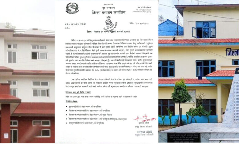 निषेधाज्ञा मिति २०८२ असोज १८ गते साँझ ७ बजेदेखि अर्को आदेश नभएसम्म लागू हुनेछ ।