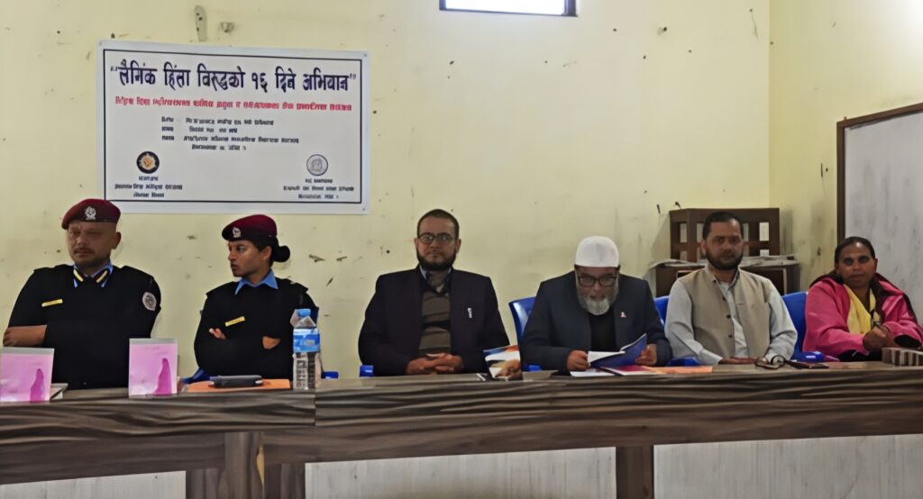 इस्लामी संघ नेपालका केन्द्रिय अध्यक्ष नजरुल हसन फलाहीको प्रमुख अतिथी र अन्तरधार्मिक संजाल (निरन) नेपाल एवम् इस्लामी संघ नेपाल लुम्बिनी प्रदेश पश्चिमका अध्यक्ष ओबैदुर्रहमान खानको अध्यक्षतामा लैङ्गिक हिंसा विरुद्धको १६ दिने अभियान अन्तर्गत लैङ्गिक हिंसा न्यूनीकरणका लागि धार्मिक अगुवा तथा सरोकारवाला निकायहरूसँग अन्तरक्रिया कार्यक्रम गरेका हुन ।
